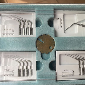 Caja de limas ultrasónicas originales Satelec (Acteon) para uso en endodoncia, compuesta por diferentes calibres y longitudes (K25/25, K25/21 y K15/21), que permiten adaptarse a distintas anatomías de conducto radicular.
